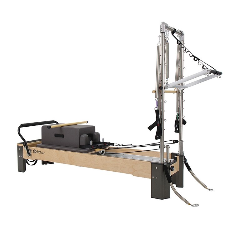 - Reformer: Đây là thiết bị đại diện nhất được tạo ra bởi Joseph Pilates và là thiết bị nổi tiếng nhất trong các thiết bị Pilates. Với thiết bị này, có thể thực hiện hơn 100 bài tập khác nhau. Combi Reformer cho phép thực hiện bài tập cân bằng trên thảm dễ dàng hơn, do đó nó được sử dụng cho việc tái tạo hoặc kiểm soát cơ bắp và cột sống. Đây là thiết bị tập trung vào việc tăng cường sức mạnh và cân bằng chất lượng hơn là tăng cường cơ bắp theo qui luật số lượng. Nó có thể thực hiện các chuyển động đa dạng hơn so với Modern Reformer và dễ sử dụng trong không gian hẹp hơn so với Caformer.